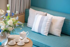 Căn hộ mẫu tại Charmora City được thiết kế theo phong cách hiện đại lấy cảm hứng từ biển Nha Trang, sử dụng tông màu sáng và các đường cong mềm mại tạo cảm giác thanh lịch và thư giãn. Các loại căn phổ biến gồm Studio, 1PN và 2PN với diện tích tối ưu, bố trí thông minh và cửa kính lớn đón sáng tự nhiên.