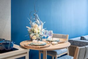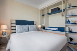 Nội thất thiết kế theo tiêu chuẩn cao cấp, đầy đủ thiết bị bếp, vệ sinh, điều hòa và khóa điện tử, phù hợp để ở, nghỉ dưỡng hoặc khai thác cho thuê. Nhà mẫu thể hiện rõ tinh thần biển, sự tinh tế trong vật liệu và mang đến trải nghiệm sống tiện nghi trong khu đô thị có nhiều tiện ích hiện đại.