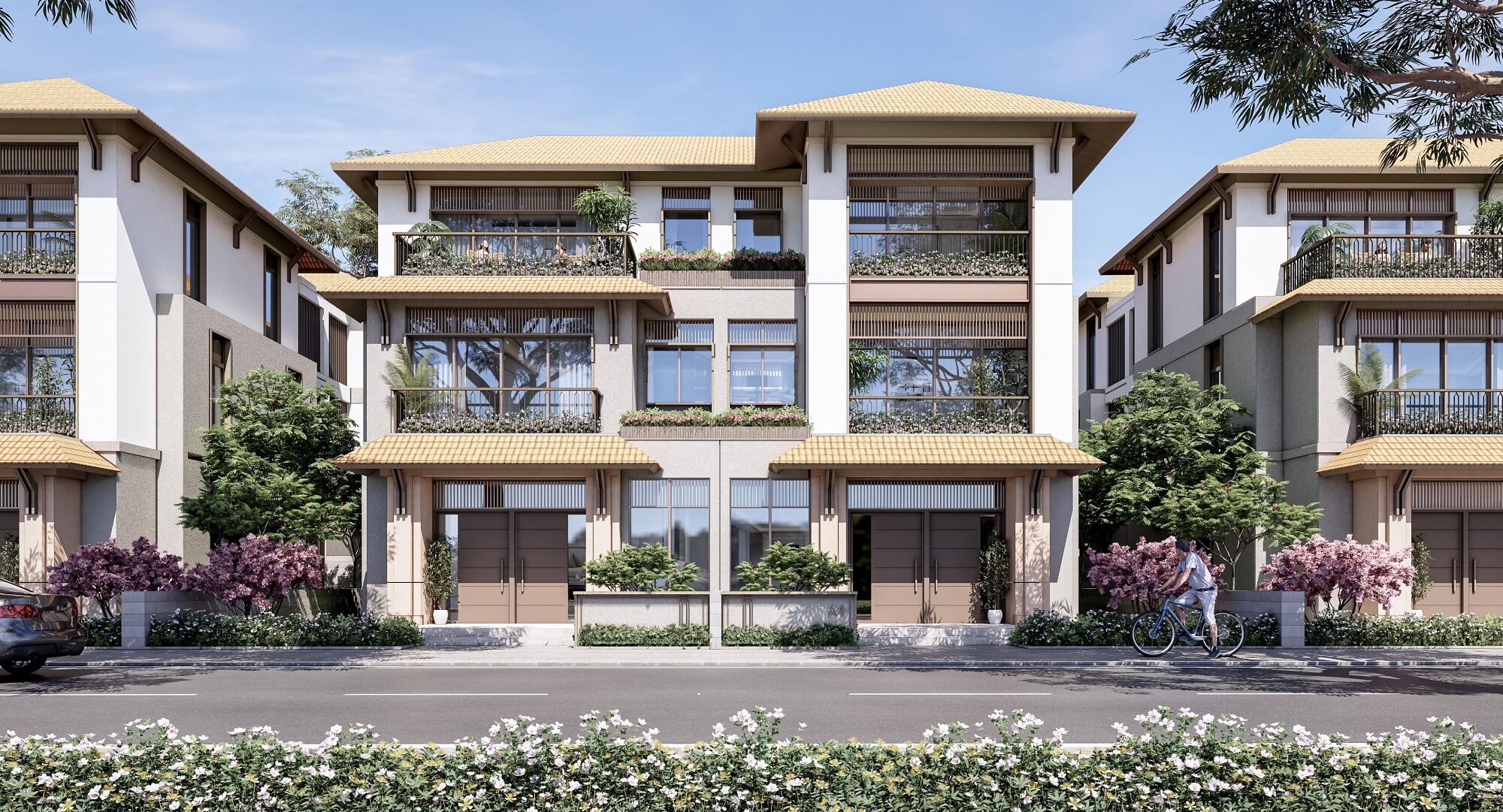 Đặc điểm Kiến trúc: Các biệt thự mang phong cách kiến trúc nghỉ dưỡng sang trọng, lấy cảm hứng từ di sản kiến trúc Việt Nam (Champa, Nguyễn Dynasty, French Colonial…) và các khu nghỉ dưỡng nổi tiếng của Sun Group (như phong cách Cát Bà, Hòn Thơm…). Thiết kế chú trọng không gian mở, ban công, sân vườn tạo sự riêng tư và hòa hợp với thiên nhiên.
